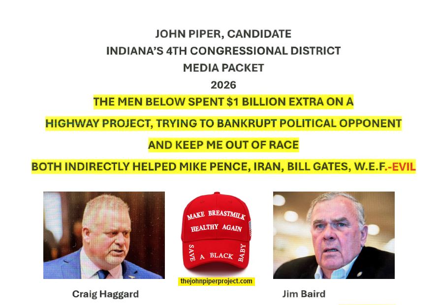 Please note: many of the videos, PDF documents, and information on this website have come from John's older "The John Piper for Senate/Governor" websites. They are repurposed here at thejohnpiperproject.com because they are still relevant to John Piper's situation, and should be of interest and/or a concern for all freedom loving, law abiding Hoosiers.